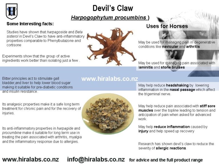 • Long term use of Devil’s Claw  for managing arthritis and degenerative conditions. Suitable for the older horse.