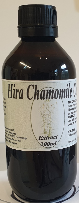 From organically grown Matricaria recutita flowers Mildly sedating. . Add 5ml to Hira Lassie or fruit juice.