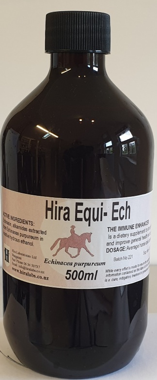 Echinacea (Echinacea purpurea) extract stimulates the immune system and increases the body’s ability to fight infection. Increases white and red cell production. . May be used during the show season to protect the horse from cross-infection. Suitable for use on horses with hoof problems.