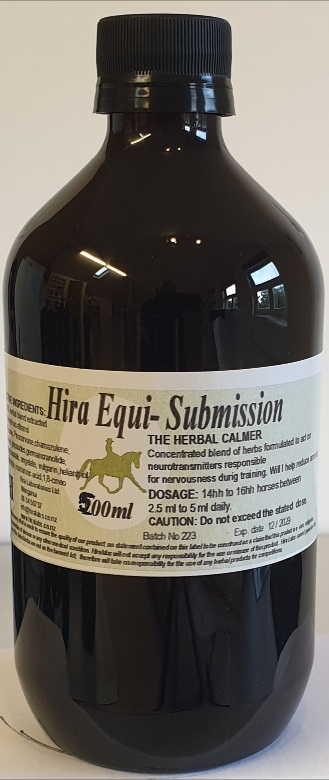 Dose:between 2.5 -5ml ml may be given on the day of a competition. 5ml the night before will further help calm the horse on the day required. contact us for further information on this product and links to Banned Herbs .