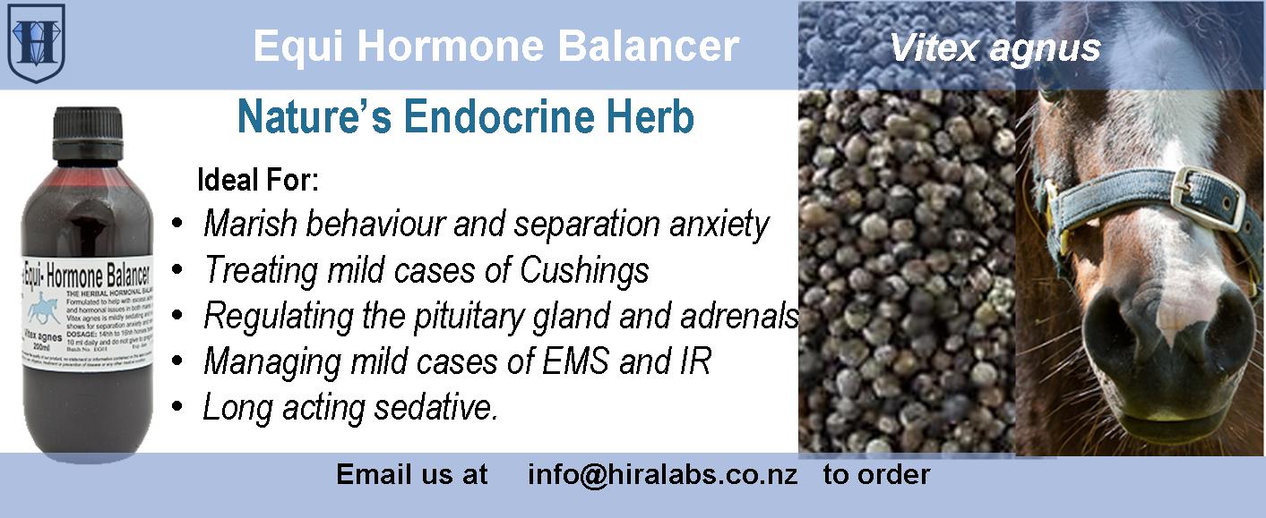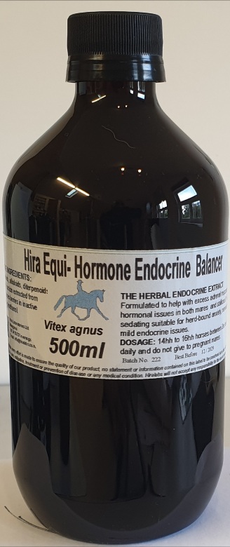 A concentrated extract of Vitex agnus (Chaste Berry) which may help act on the endocrine system in particular the luteinising hormone. It is a relaxant herb that regulates hormonal functions and promotes lactation. Used in conjunction with St John’s Wort may reduce marish behaviour. Suitable for use on stallions and geldings exhibiting stallion-like behaviour.Many people have found this a good tide-over product for competition by giving it in conjunction with Seda Horse the night before a show and then giving 5ml of Hormone Balancer on the day of the show.