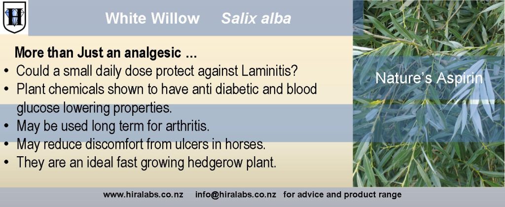 Salicin from which salicylic acid is extracted. Rich in phenolic compounds and anti-oxidants. It also contains Gibberellic acid (GA) a phyto-hormone important for plant growth. The “green revolution” of farming occurred largely due to the application of gibberellic acid to crops. Scientists are discovering the many ways in which gibberellins aid plant development, while discerning the methods by which they are transported and synthesized in plants. It is commonly used in agriculture to increase crop yields and as an agent to root cuttings.